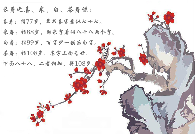 長壽有喜、米、白、茶壽之說