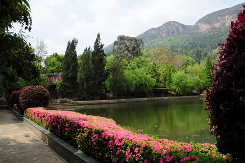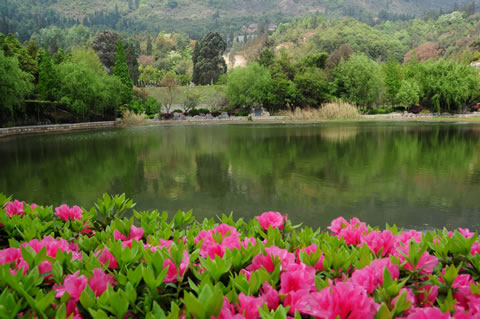 一泓清池,造化所賜,池水可掬,青山可枕。掬水枕山,精妙此地,青山拱衛(wèi),蔥翠如碧。一泓清水自然生成于此,可謂天賜的神來(lái)之筆。環(huán)湖漫步,野生的老梅樹(shù)干橫盤(pán)虬曲,剛勁而蘊(yùn)含生機(jī);錯(cuò)落的數(shù)株紫瓣玉蘭,不經(jīng)意散發(fā)著淡淡馨香,幾只水鳥(niǎo)在池中浮萍上悠閑漫步 ,將紅塵的浮燥消弭得無(wú)影無(wú)蹤。