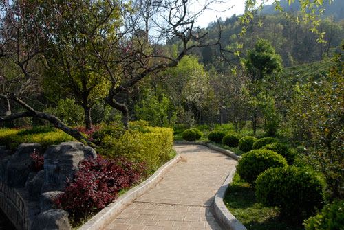 青山巍然在后,兩側(cè)山林圍合,前方是天池的一泓清水,蒼松翠柏之中,錦庭花園若隱若現(xiàn)。在大氣磅礴大氣的金寶山藝術(shù)園林中,40多畝的錦庭花園猶如一個(gè)精致的私家花園。