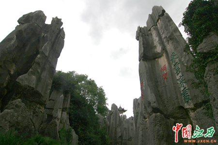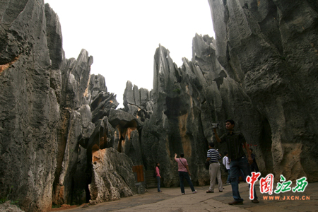 7日下午,首屆中國網(wǎng)絡(luò)媒體云南行記者團(tuán)一行來到昆明市石林景區(qū)參觀。(中國江西新聞網(wǎng)記者 鄧小勇 攝)