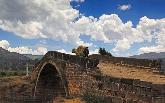 城西五公里的雙龍橋,又名十七孔橋。造型奇特:瀘江河和塌沖河匯合處,兩河相交像是雙龍,故名“雙龍橋”。建于清乾隆年間,全長155米,寬3米,全部用平整的石塊鑲砌。橋上建蓋有三層飛檐式閣樓,樓高20米。橋兩端各有橋亭一座,與樓閣相互輝映,樓中有樓,檐外有檐,雕琢精美。遠望橋身,宛若長龍臥波,是我國造橋建筑史上珍貴的杰作。