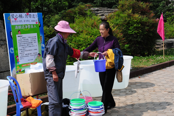 與一般的墓園不同,金寶山主打生命公園,金寶山里山林蔥郁,杜鵑紅艷,柳絲吐絮,數(shù)千只七彩的風(fēng)車插在風(fēng)景秀麗的園區(qū)道路兩旁,給公園添上了絢麗的動(dòng)感;古人謂清明“萬物生長時(shí),皆清潔而明凈,故謂之清明。”為讓人們在清明潔凈的環(huán)境中祭拜親人,金寶山特意準(zhǔn)備了數(shù)萬小水桶和小毛巾在十多個(gè)點(diǎn)擺放,為客戶擦拭墓碑提供了直接的便利;還有民族歌舞優(yōu)雅的獻(xiàn)唱和舞姿,精心編輯的中國古代百俗圖文鑒賞,以及贈(zèng)送給客戶的精美禮品……這些,都傳達(dá)出充滿陽光與活力的生命公園的與眾不同之處,使客戶體驗(yàn)過節(jié)的心情,打造綠色、清潔、美好環(huán)境,度過溫情、美好的節(jié)日。因?yàn)檫@里園林化的公園環(huán)境和個(gè)性化的貼心服務(wù),客戶的反映很好。市民王先生說:“園區(qū)里清潔安靜,環(huán)境清幽,路旁還插著七彩的風(fēng)車,陽光、溫馨,這是我第一次看到環(huán)境這么好的墓園,就像置身于公園之中,最主要的是小水桶和毛巾免費(fèi)提供讓我們清潔墓碑更加方便。”他認(rèn)為這是清明節(jié)重要的戶外形式,對綠色生活、文明祭掃具有比較積極的作用,為城市的文明作出了貢獻(xiàn)。