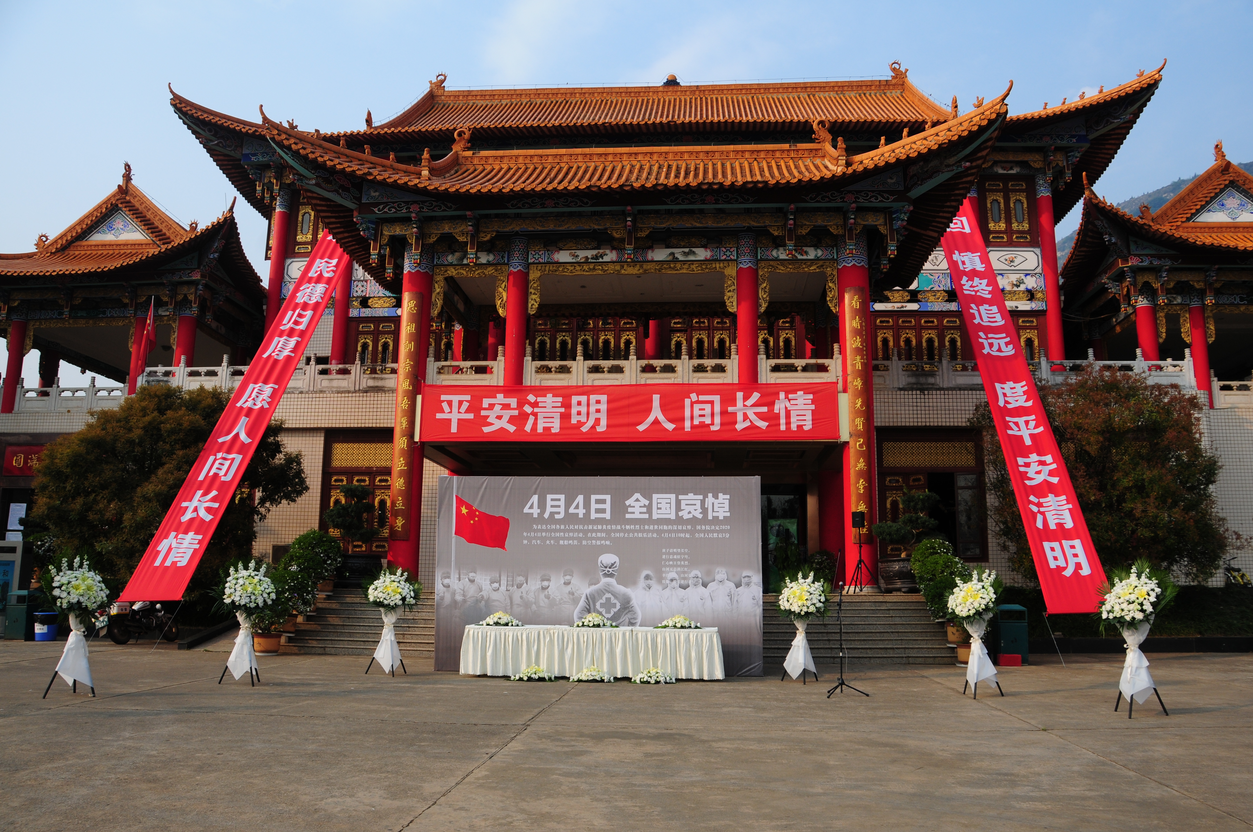 2020年4月4日上午,為響應(yīng)國(guó)家號(hào)召,表達(dá)對(duì)抗擊新冠肺炎疫情斗爭(zhēng)犧牲烈士和逝世同胞的深切哀悼,在金寶山文化廣場(chǎng)的專題展板前,多家單位的代表共同參加了這次悼念活動(dòng)。