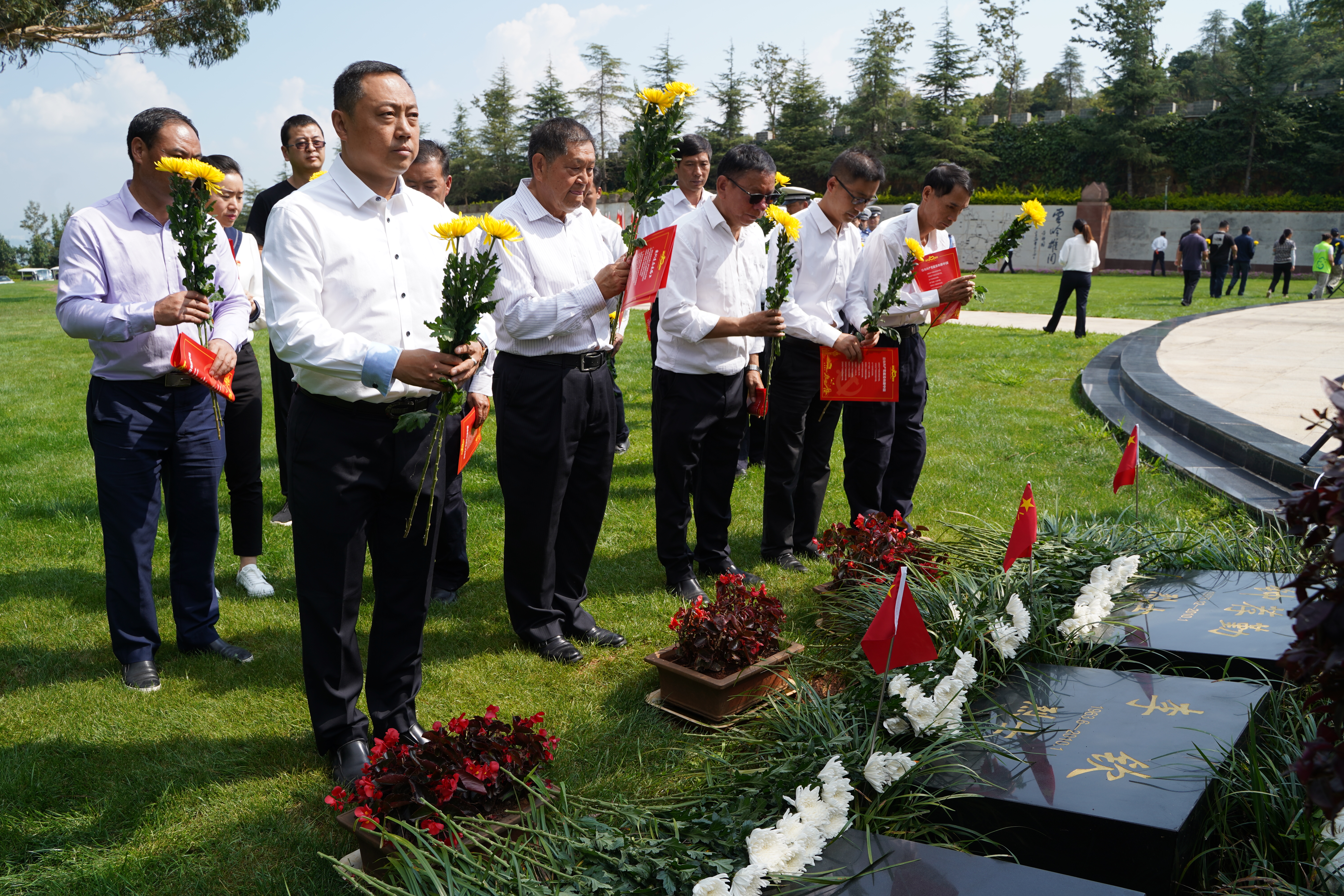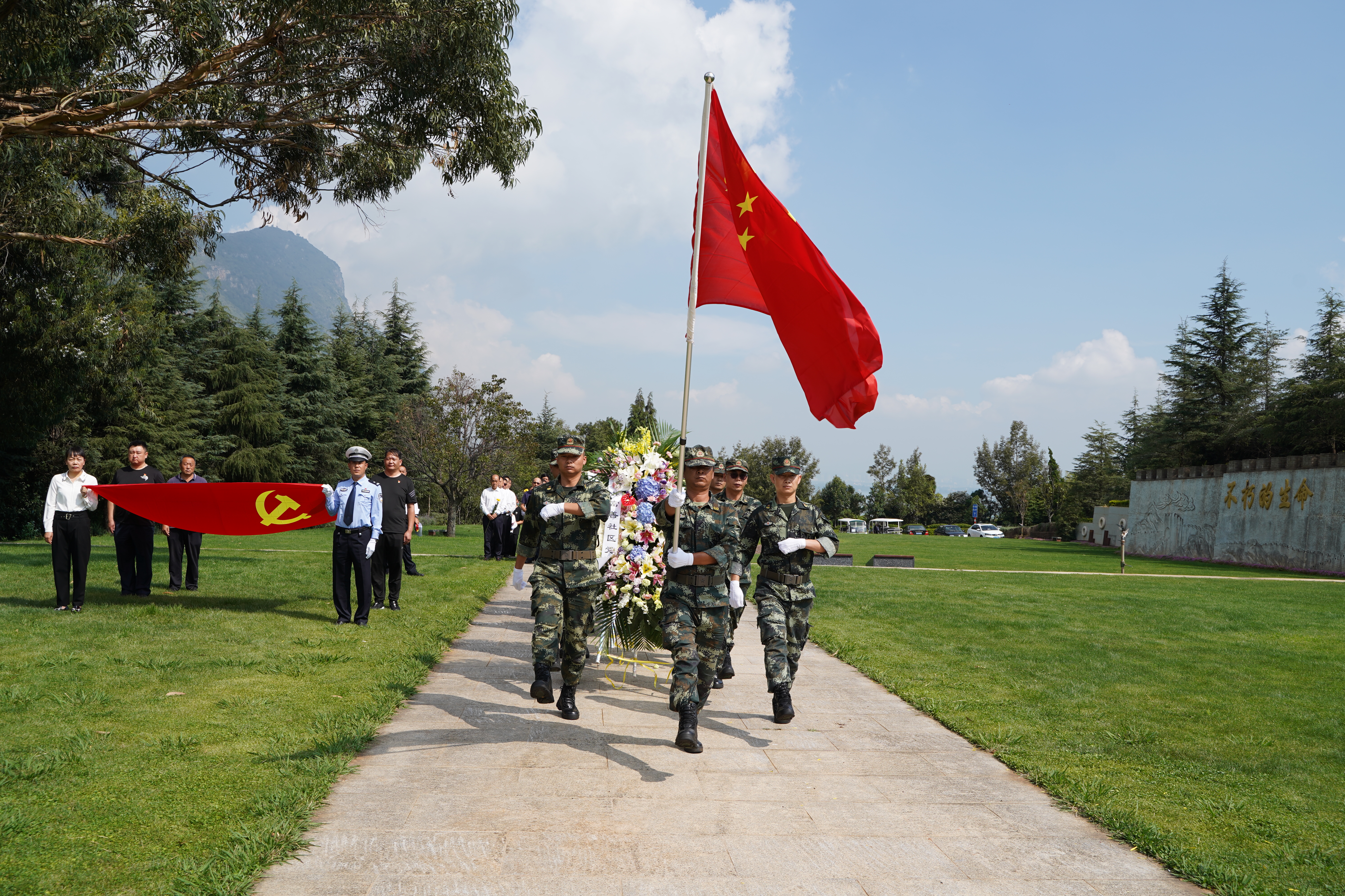 今天是國(guó)家第八個(gè)烈士紀(jì)念日。為了紀(jì)念、緬懷那些為共產(chǎn)主義事業(yè)而犧牲的革命先烈們,時(shí)值中國(guó)共產(chǎn)黨建黨百年之際,中共富善社區(qū)黨委、昆明市交警四大隊(duì)八中隊(duì)支部委員會(huì)、中共昆明繞城高速公路開(kāi)發(fā)有限公司支部委員會(huì)、中共昆明高海公路建設(shè)投資開(kāi)發(fā)有限責(zé)任公司支部委員會(huì)和云南諾仕達(dá)金寶山藝術(shù)園林的員工們?cè)诮饘毶剿囆g(shù)園林的忠誠(chéng)衛(wèi)士英烈廣場(chǎng),舉行隆重的紀(jì)念活動(dòng)。